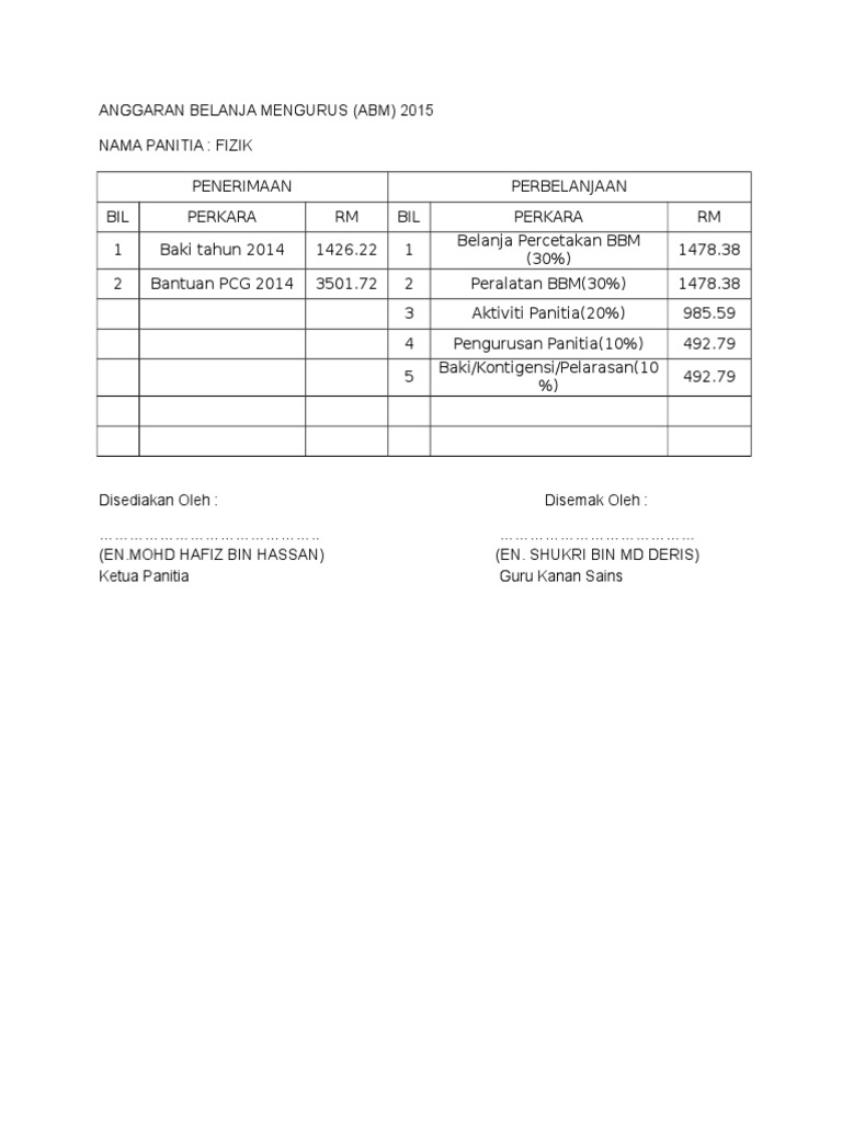 Anggaran Belanja Mengurus 2015 Doc Document