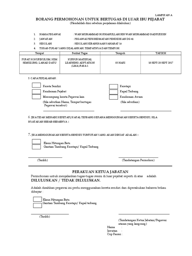 Borang Bertugas Di Luar Pejabat