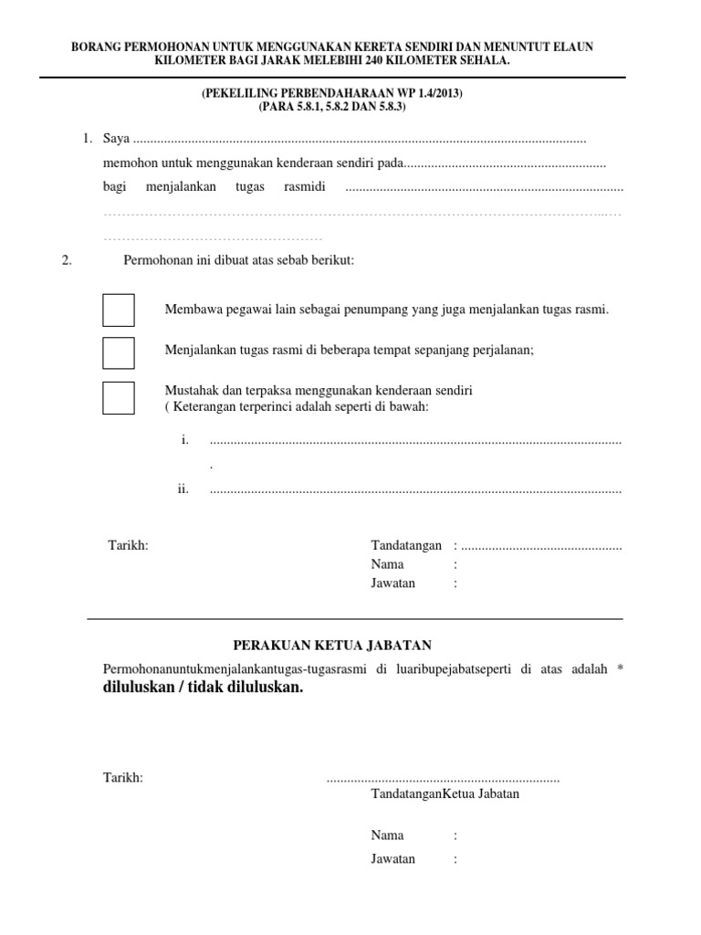 Borang Kebenaran Menggunakan Kenderaan Sendiri Jpa