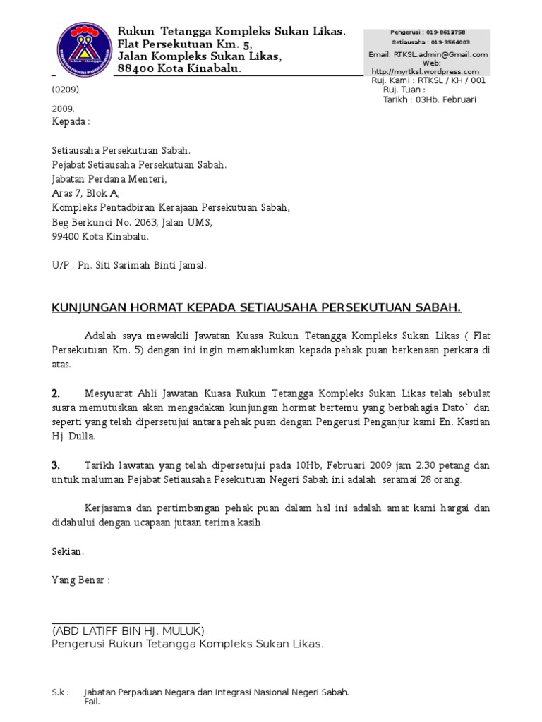 Surat Rasmi Permohonan Kunjungan Hormat Viral Blog D