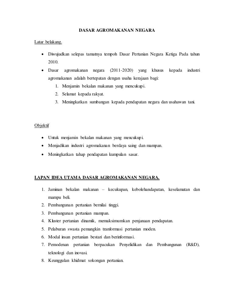 Dasar Agromakanan Negara 2011 2020 Dan Fama