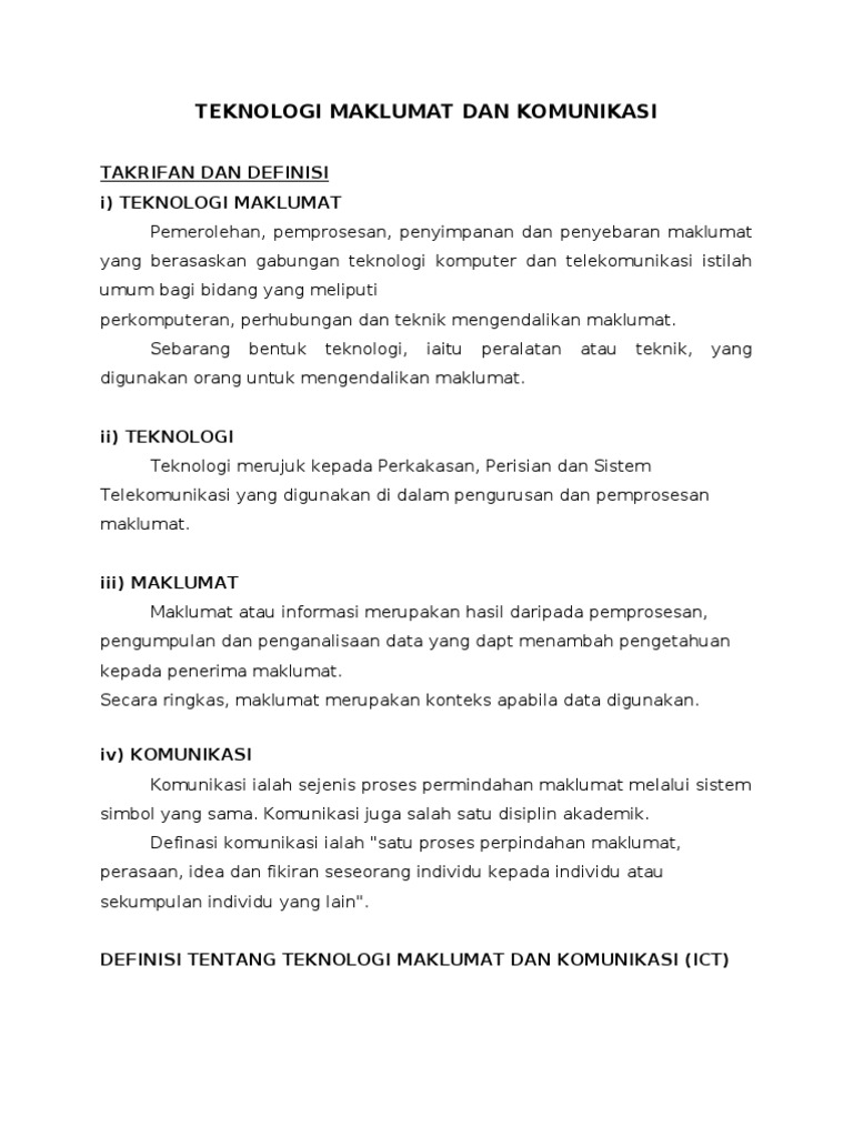 Takrifan Dan Definisi Teknologi Maklumat Dan Komunikasi Docx