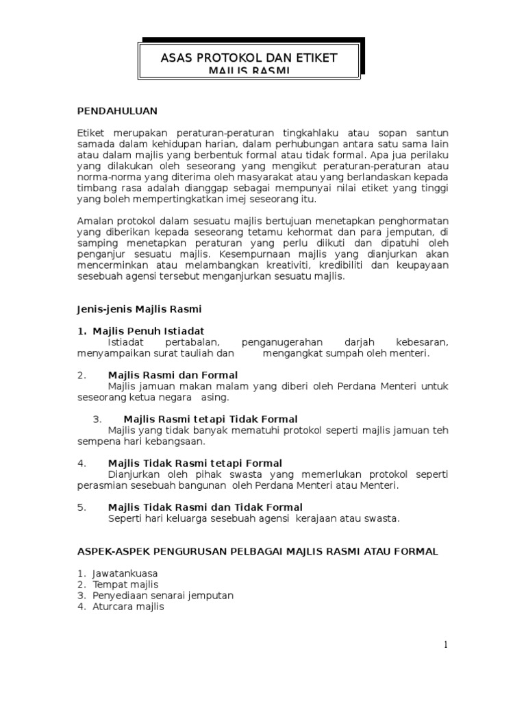 Protokol Dan Etiket Dalam Pengurusan Dan Menghadiri Majlis Pdf