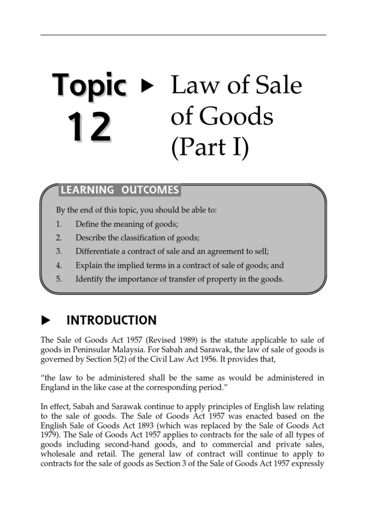 Sale Of Goods Act Of Goods Act 1893 Law Governing Sale Of Goods Sale Of Goods Act 1957 And Was Revised Duties Of Seller To Pass Good Title To The Buyer Pdf Document