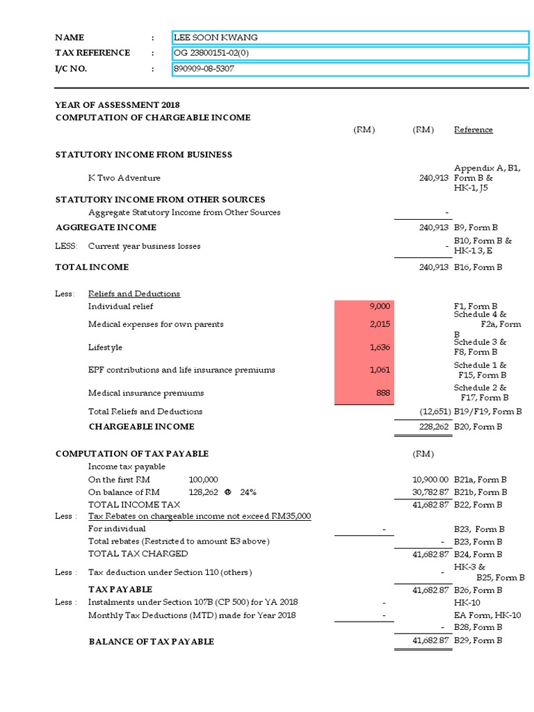 Lee Soon Kwang Taxcomp 2018 070719 Xls Depreciation Expense