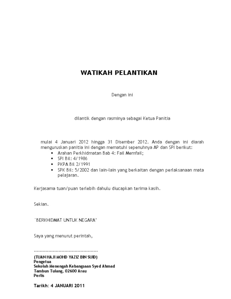 Surat Pelantikan Ketua Panitia Doc Document