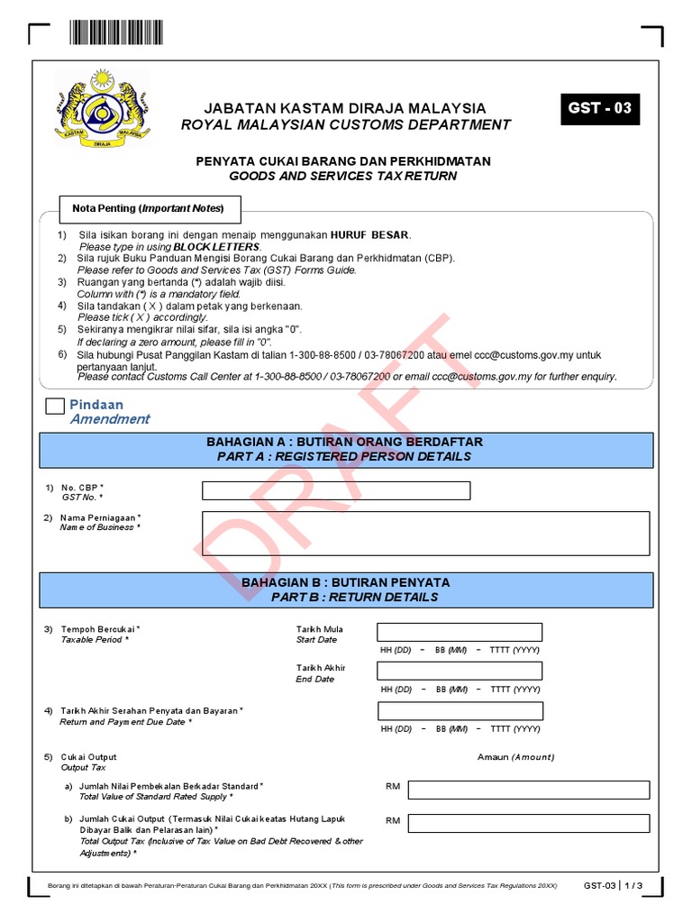 Panduan Mengisi Borang Gst 03 As At 30 Julai 2015